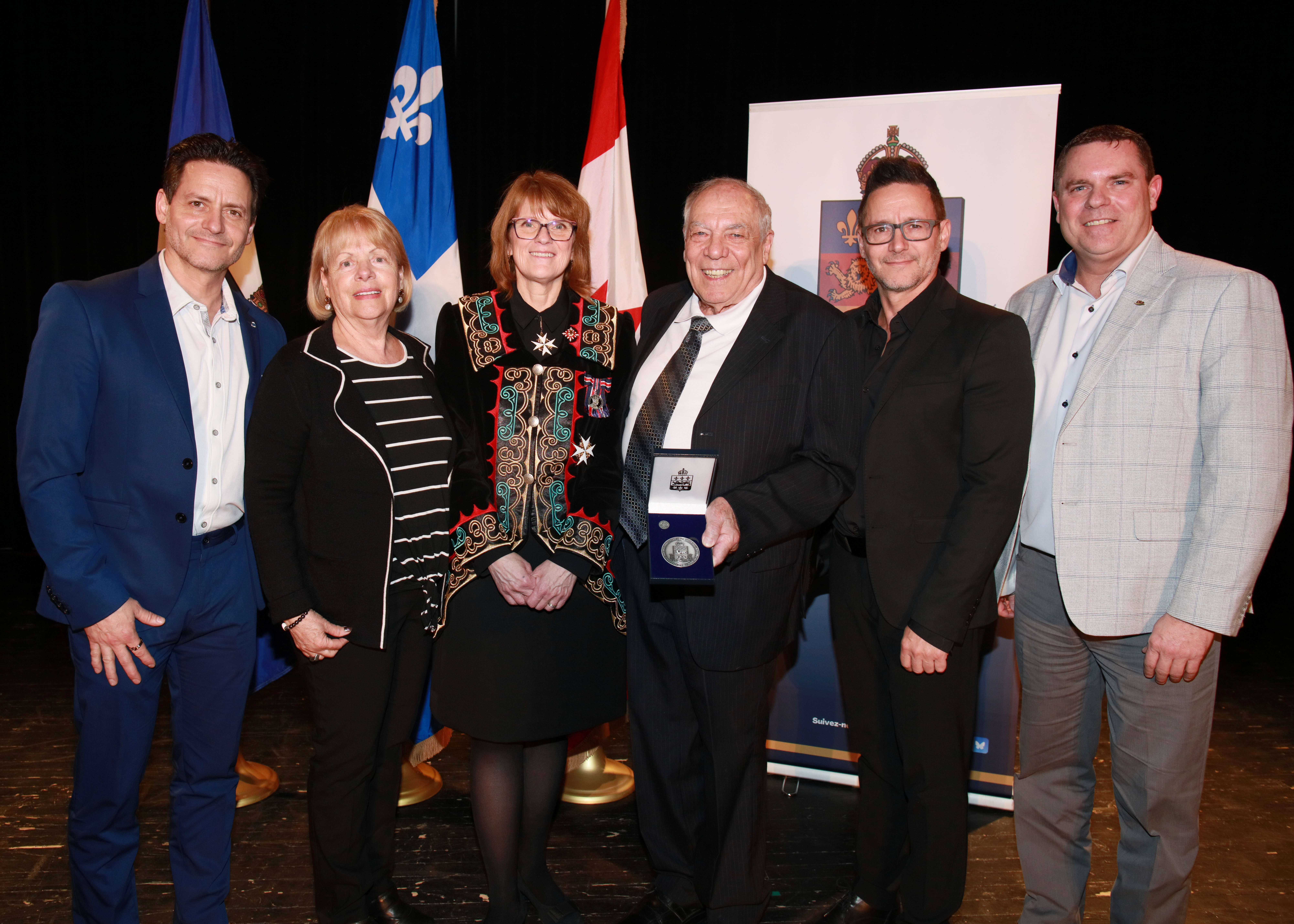 250413 Cérémonie de remise de la médaille de la lieutenante-gouverneure – Laurentides – Lachute 064 Publié le 2025-04-16 à × dans 250413 Cérémonie de remise de la médaille de la lieutenante-gouverneure – Laurentides – Lachute 064 Médaille de la Lieutenante-gouverneure Réal avec sa famille ainsi que la lieutenante-gouverneure et le maire d’Oka
